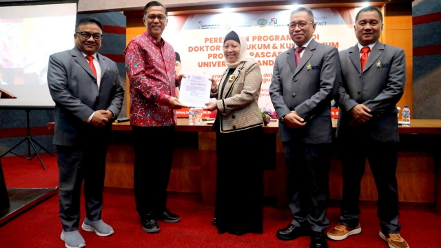 MOMENTUM, Bandar Lampung--Universitas Bandar Lampung (UBL) resmi membuka Program Studi Doktor (S3) Hukum, berdasarkan Surat Keputusan Menteri Pendidikan Tinggi, Sains, dan Teknologi Republik Indonesia Nomor 821/B/O/2025. Penyerahan SK dilakukan langsung oleh Kepala Lembaga Layanan Pendidikan Tinggi (LLDIKTI) Wilayah II, Prof. Dr. Iskhaq Iskandar, M.Sc kepada Ketua Yayasan Administrasi Lampung (YAL) Ir. Ratna Hapsari Barusman, MM., ΜΗ. selaku badan hukum yang menaungi Universitas Bandar Lampung bertempat di Auditorium Pascasarjana Universitas Bandar Lampung, Sabtu (04-10-2025).