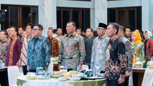 MOMENTUM, Bandarlampung -- Gubernur Lampung, Rahmat Mirzani Djausal, menggelar Silaturahmi dan Penyambutan Panglima Komando Daerah Militer (Kodam) XXI Radin Inten, Mayor Jenderal TNI Kristomei Sianturi di Mahan Agung, Senin 13 Oktober 2025.