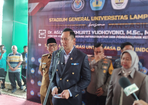 MOMENTUM, Bandarlampung--Menteri Koordinator (Menko) Bidang Infrastruktur dan Pembangunan Kewilayahan Agus Harimurty Yudhoyono (AHY) menghadiri Stadium General Universitas Lampung (Unila), Selasa (14-10-2025).