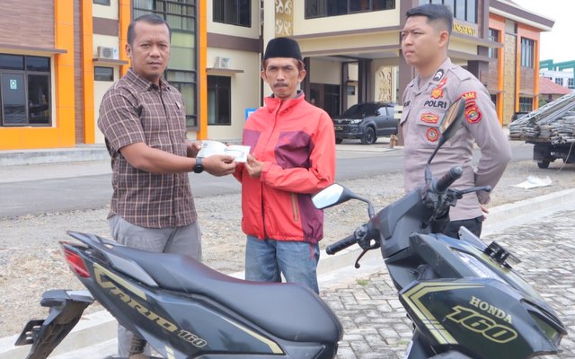 Sepeda motor jenis Honda Vario warna hitam dengan nomor polisi BE 6272 UF itu diserahkan kembali kepada pemiliknya, Jimi dan Dewirianti, pada Selasa 14 Oktober 2025.