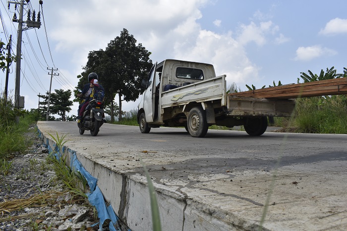 Sebab, baru beberapa bulan selesai dikerjakan oleh CV Nusa Emas, jalan tersebut sudah banyak yang retak. Diduga kuat, material yang digunakan dan proses pengerjaan tidak sesuai standar.