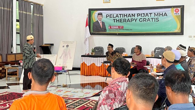 MOMENTUM, Bandarlampung--Anggota DPRD Provinsi Lampung dari Fraksi PKS, Yusnadi, mendorong masyarakat untuk mandiri dan produktif melalui Pelatihan Pijat MHA Therapy yang digelar di Aula Kantor DPTD PKS Lampung Timur, Senin (13-10-2025).