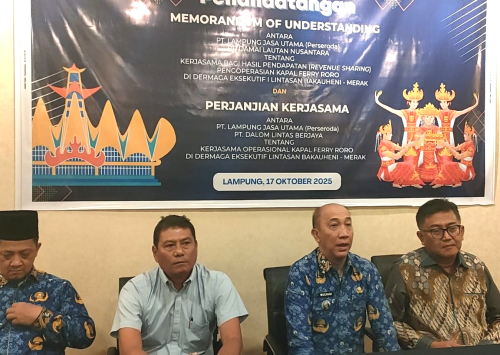 Hal itu dipastikan setelah adanya penandatanganan nota kesepahaman atau memorandum of understanding (MoU) dan perjanjian kerja sama (PKS) antara PT Lampung Jasa Utama dengan PT Damai Lautan Nusantara dan PT Dalom Lintas Berjaya di Hotel Golden Tulip, Jumat (17-10-2025).