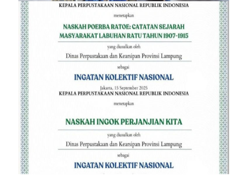 Penghargaan bergengsi tersebut diberikan sebagai bentuk pengakuan atas nilai sejarah, budaya, dan literasi yang terkandung dalam naskah-naskah kuno tersebut. Keberhasilan ini merupakan hasil dari usulan Dinas Perpustakaan dan Kearsipan Provinsi Lampung yang terus menunjukkan komitmennya dalam pelestarian warisan literasi dan budaya daerah.
