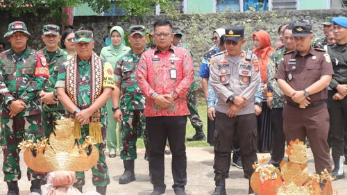 Seremoni penyambutan kunjungan tim yang dipimpin Brigjen TNI Toto Sulistyono itu, berlangsung di Balai Kampung Sriwijaya, Kecamatan Umpusemenguk, Kamis (16-10-2025).