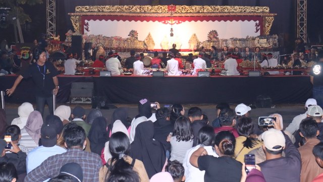 Yang menarik, Kapolres Pringsewu turut tampil langsung dalam pementasan dengan mengenakan kostum Semar, selaras dengan lakon yang dibawakan. Penampilan tersebut menjadi simbol kepemimpinan yang mengayomi dan membumi, sesuai dengan karakter tokoh Semar dalam dunia pewayangan.
