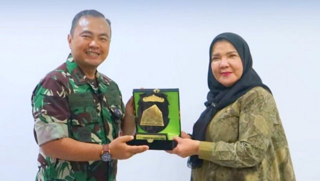 MOMENTUM, Bandarlampung -- Walikota Bandarlampung Eva Dwiana menerima kunjungan silaturahmi Komandan Pangkalan Angkatan Udara (Danlanud) Pangeran M. Bun Yamin, Letkol Pnb Oktavianus Olga Satya Nugraha di ruang rapat walikota, Kamis 16 Oktober 2025.