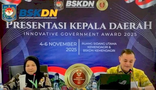 Walikota Bandarlampung Eva Dwiana memaparkan langsung dua inovasi unggulan daerah di hadapan tim penilai Badan Strategi Kebijakan Dalam Negeri (BSKDN) Kemendagri, di Jakarta, pada 6 November 2025.