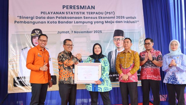MOMENTUM, Bandarlampung -- Pemerintah Kota Bandarlampung bersama Badan Pusat Statistik (BPS) meresmikan Gedung Pelayanan Statistik Terpadu (PST) di kompleks Kantor BPS Bandarlampung, Jumat (7-11-2025).