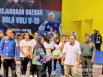 MOMENTUM, Bandarlampung -- Ketua Persatuan Bola Voli Seluruh Indonesia (PBVSI) Provinsi Lampung yang juga Walikota Bandarlampung, Eva Dwiana, membuka secara resmi Kejuaraan Daerah (Kejurda) Bola Voli U-19 di PKOR Wayhalim, Selasa (28-10-2025).