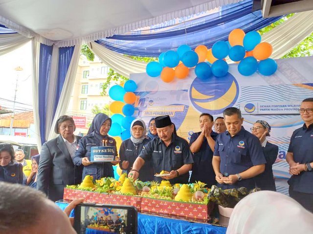 MOMENTUM, Bandarlampung--Dewan Pimpinan Wilayah (DPW) Partai Nasdem Provinsi Lampung menggelar puncak perayaan Hari Ulang Tahun (HUT) ke-14 Partai Nasdem di kantor DPW setempat, Selasa (11-11-2025).