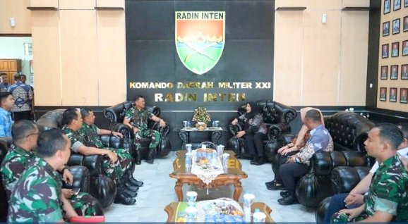 MOMENTUM, Bandarlampung -- Walikota Bandarlampung Eva Dwiana melakukan kunjungan silaturahmi ke Komando Daerah Militer (Kodam) XXI Raden Inten, Jumat (10-10-2025).