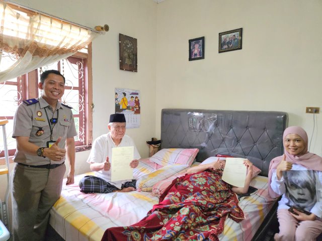 MOMENTUM, Bandarlampung -- Kantor Pertanahan Kota Bandarlampung terus berinovasi dalam memberikan pelayanan terbaik bagi masyarakat. Melalui program Layanan Antar Sertipikat Tanah (Lantah), petugas melakukan pengantaran langsung sertipikat tanah kepada sepasang lansia di wilayah Sukabumi, Bandarlampung.