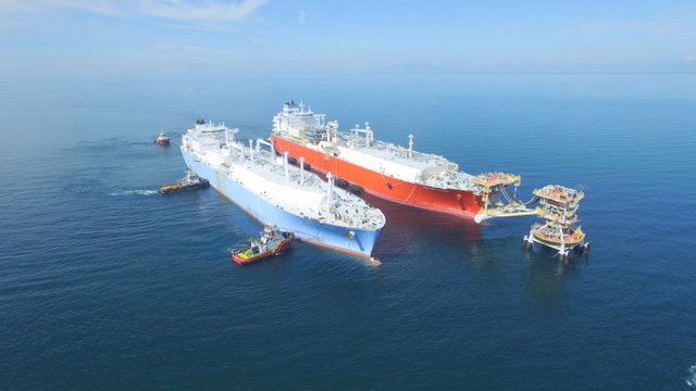 MOMENTUM, Labuhan Maringgai -- Dari perairan 21 km lepas Pantai Labuhan Maringgai, Floating Storage Regasification Unit (FSRU) Lampung kembali menerima kargo Liquefied Natural Gas (LNG) untuk kebutuhan PT Perusahaan Gas Negara Tbk (PGN) sebesar ±131.000 m³. LNG tersebut bersumber dari LNG Plant domestik.