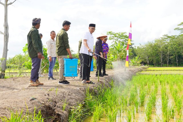 Dalam kesempatan tersebut, Gubernur Mirza juga mencoba menggunakan langsung POC dengan menyemprotkan ke tanaman padi bersama masyarakat yang tergabung pada Kelompok Tani Karya Mandiri.