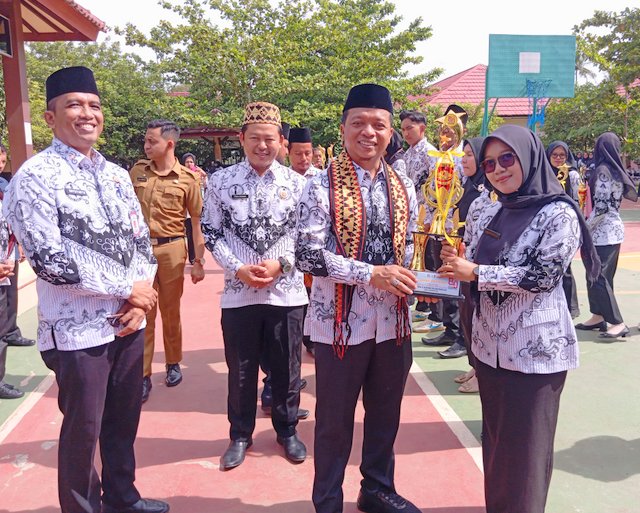 Usai upacara, di lakukan pemeberian tropi kepada pemenang lomba dalam memperingati JGN dan HUT PGRI, baik Voli ball, solo song, senam dan lainnya. (**)