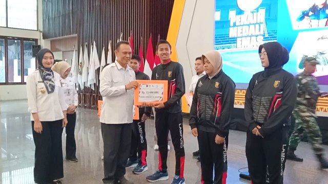 MOMENTUM, Bandarlampung--Pemerintah Provinsi (Pemprov) Lampung memberikan bonus tali asih kepada para atlet peraih medali dalam ajang kejuaraan Pekan Olahraga Nasional (PON) Beladiri 2025 di Kudus, Jawa Tengah, pada Oktober 2025 lalu.