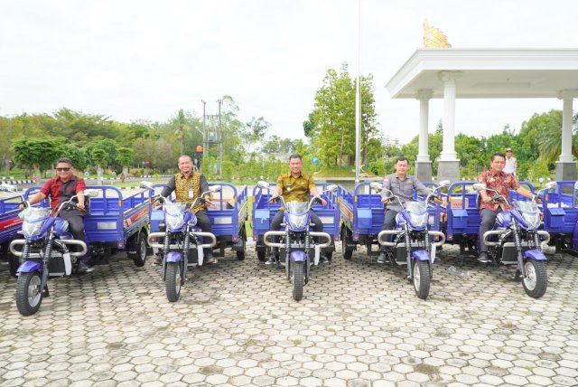 MOMENTUM, Panaragan -- Pemerintah Kabupaten Tulangbawang Barat (Tubaba) menerima bantuan tujuh unit sepeda motor roda tiga dari PT Perusahaan Gas Negara (PGN) Tbk.