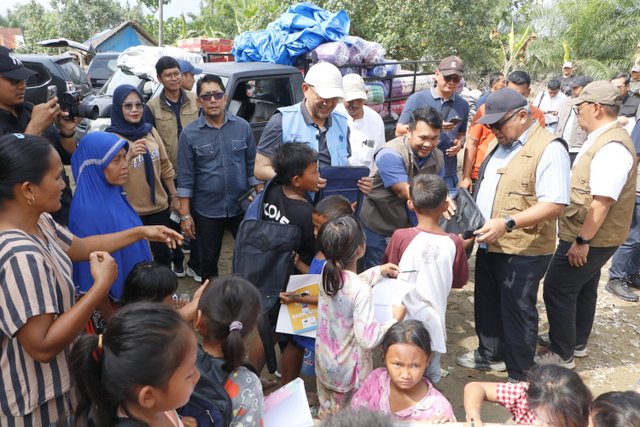 PT Perkebunan Nusantara (PTPN) IV PalmCo mengambil peran aktif dalam fase pemulihan dengan menyalurkan ratusan paket peralatan sekolah serta bantuan logistik kepada masyarakat terdampak.