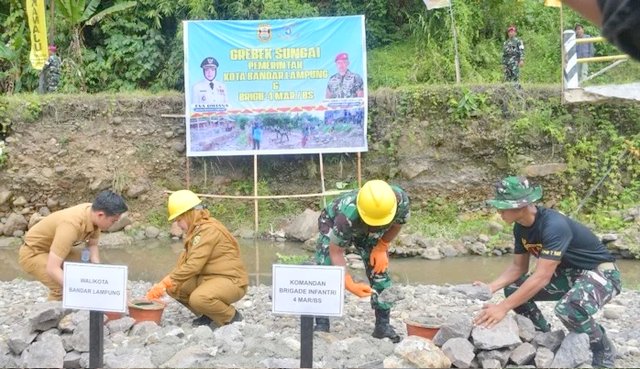 MOMENTUM, Bandarlampung -- Pemerintah Kota Bandarlampung bersama Brigade Infanteri 4 Marinir/Berdiri Sendiri melaksanakan grebek sungai di Kelurahan Sukamaju, Kecamatan Telukbetung Barat, Selasa (16-12-2025).