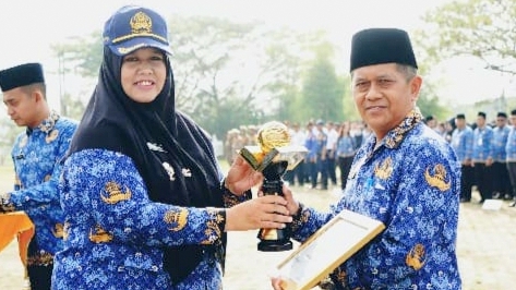 Piagam penghargaan tersebut diserahkan langsung Wakil Bupati Pringsewu Umi Laila kepada Kepala SMPN 4 Pringsewu Antonius Widi Asmoro. Agenda tersebut berlangsung di Lapangan Kantor Pemkab Pringsewu, Senin (22-12-2025).