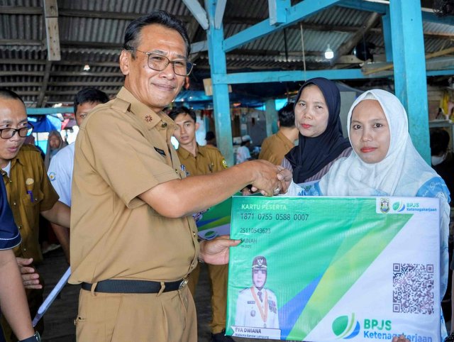 Penyerahan kartu asuransi tersebut menjadi bentuk kehadiran pemerintah dalam memberikan rasa aman bagi nelayan dan keluarganya.