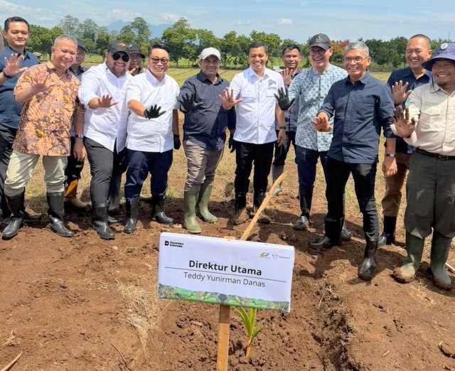 Direktur Utama PTPN I Teddy Yarman Danas, Direktur Operasional Fauzi Omar, dan Prof. Bayu Dwi Apri Nugroho dari Bappenas melakukan tanam perdana pada lahan seluas 50 hektare tersebut.