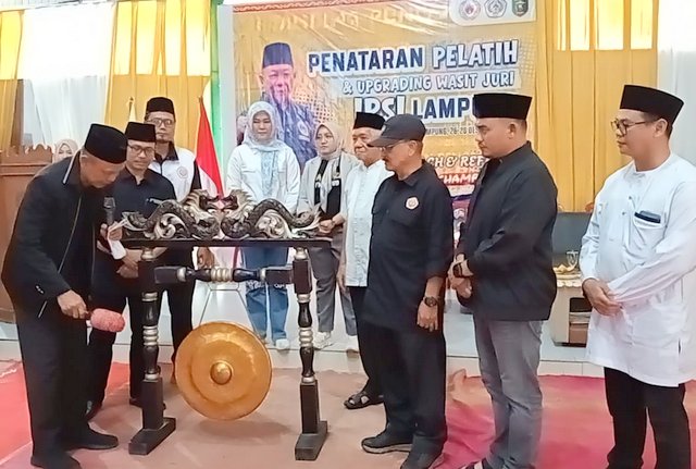 Pelatihan tersebut secara resmi dibuka oleh Taufik Hidayat dengan pemukulan gong, didampingi Wakil Ketua I dan Sekretaris Umum IPSI Lampung, Riagus Ria.