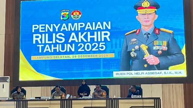 MOMENTUM, Bandarlampung--Kepolisian Daerah (Polda) Lampung menggelar rilis akhir tahun Polda Lampung yang digelar di Gedung Serba Guna Polda Lampung, Senin (29-12-2025).