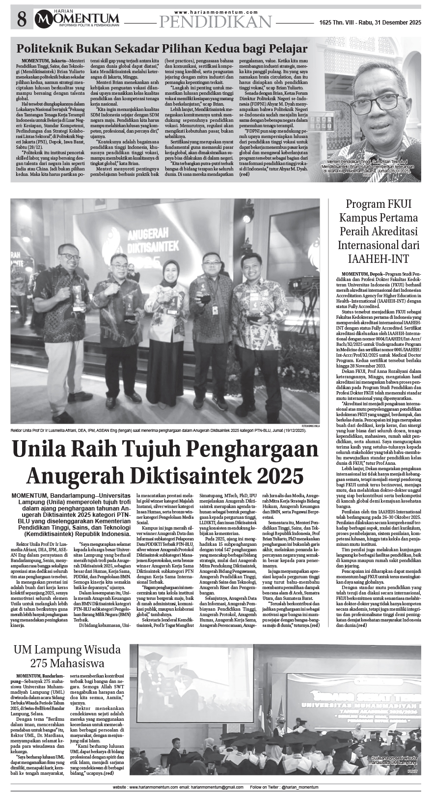 HARIAN MOMENTUM EDISI 31 DESEMBER 2025