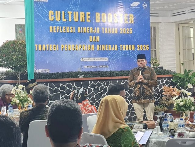 "Ini adalah hasil jerih payah kita yang penuh tantangan. Alhamdulillah, kita bisa bertumbuh dari sisi laba," kata Tuhu Bangun pada Acara Culture Booster Refleksi Kinerja Tahun 2025, dan Strategi Pencapain Kinerja Tahun 2026, di Komplek Perumahan, Minggu (4/1/2026).