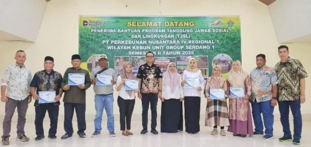 MOMENTUM, Serdang Bedagai --Perkebunan Nusantara (PTPN) IV Regional I kembali menyalurkan bantuan Program Tanggung Jawab Sosial dan Lingkungan (TJSL) kepada 42 objek penerima di wilayah Kebun Unit Group Serdang I.