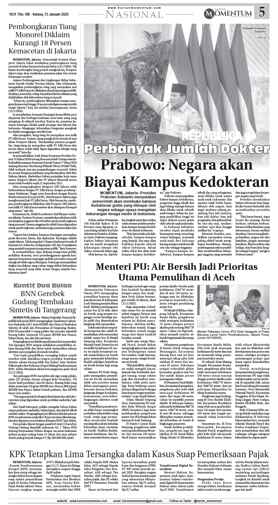 HARIAN MOMENTUM EDISI 13 JANUARI 2026 ...