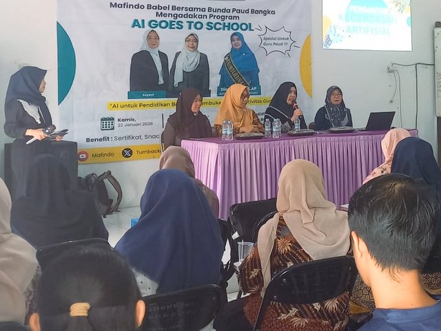 MOMENTUM, Bangka -- Masyarakat Anti Fitnah Indonesia (Mafindo) Wilayah Bangka Belitung (Babel) bersinergi dengan Bunda PAUD Kabupaten Bangka menggelar program edukasi bertajuk AI Goes to School, Kamis (22-1-2026).