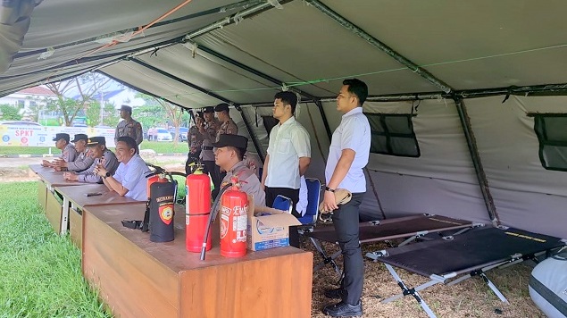 Posko Tanggap Bencana dipusatkan di halaman Mapolres Tubaba dan dilengkapi sarana pendukung, seperti kendaraan operasional, gergaji mesin, serta perahu karet yang siap digunakan untuk evakuasi dan penanganan darurat.