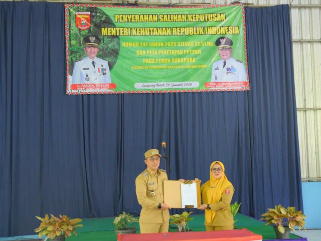 Kepastian itu ditandai dengan penyerahan salinan Keputusan Menteri Kehutanan Republik Indonesia oleh Bupati Lampung Barat Parosil Mabsus kepada masyarakat Pekon Sukapura. Prosesi berlangsung di GSG PLTA Waybesai, Kecamatan Sumberjaya, Senin (26-1-2026). Peristiwa ini disambut isak tangis haru warga.