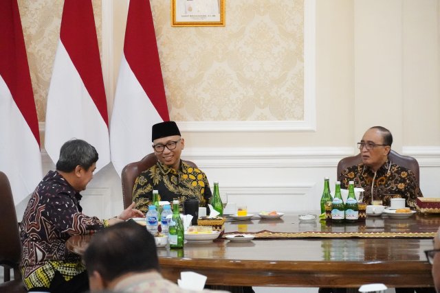 MOMENTUM, Bandarlampung -- Gubernur Lampung Rahmat Mirzani Djausal menyambut kunjungan Ketua Mahkamah Agung Republik Indonesia Sunarto beserta jajaran pimpinan tinggi Mahkamah Agung dalam acara ramah tamah di Guest House Mahan Agung, Rabu malam (28-1-2026).
