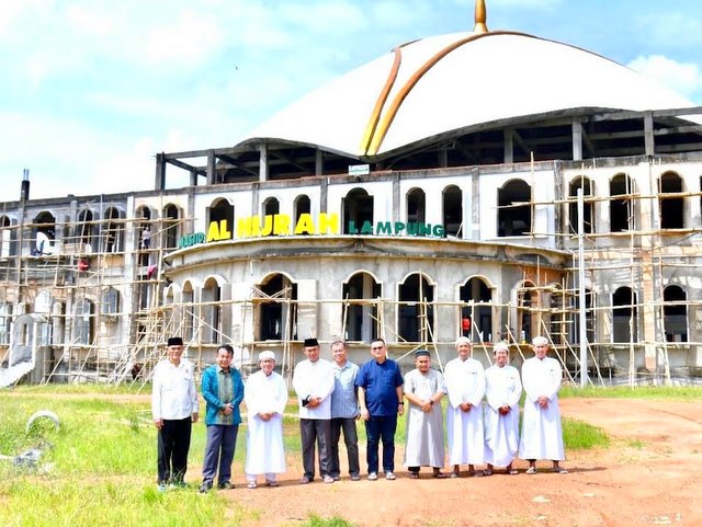 Kehadiran jajaran KONI Provinsi Lampung disambut oleh pengurus Masjid Al Hijrah, Nasrullah Yusuf.