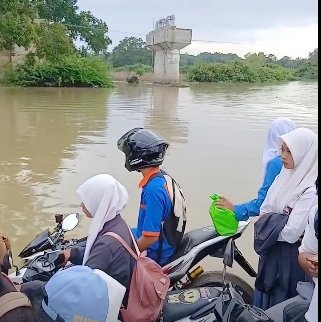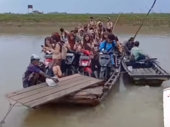 MOMENTUM, Bandarlampung--Sebuah video yang memperlihatkan perahu bermuatan pelajar dan sepeda motor menyeberangi sungai di Desa Kalipasir, Kecamatan Waybungur, Kabupaten Lampung Timur, beredar luas di media sosial dan menarik perhatian publik.