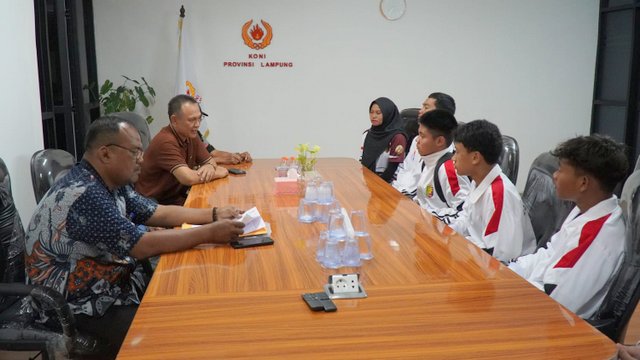 MOMENTUM, Bandarlamapung -- Ketua Umum KONI Provinsi Lampung Taufik Hidayat, didampingi Ketua Pengprov Gulat Lampung Mahtub Djaiz, Kamis 5 Februari 2025, melepas atlet gulat untuk mengikuti Kejuaraan Nasional (Kejurnas) Invitasi Gulat di Jakarta.