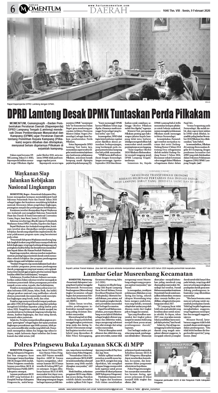 HARIAN MOMENTUM EDISI 9 FEBRUARI 2026 ...