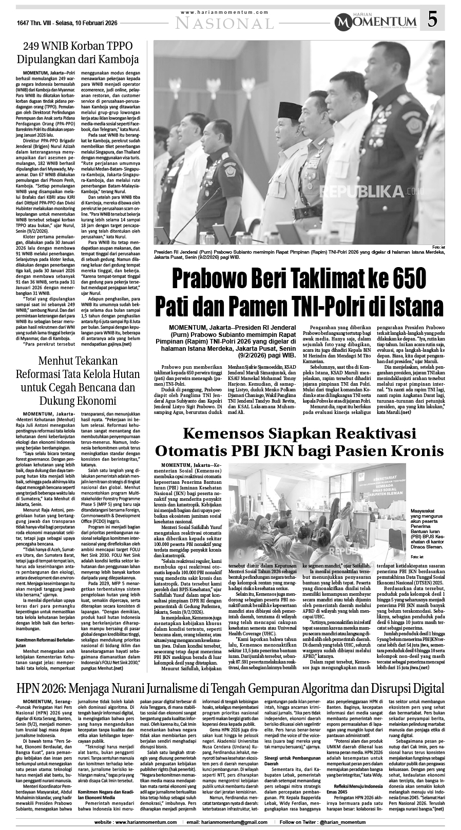 HARIAN MOMENTUM EDISI 10 FEBRUARI 2026 ...