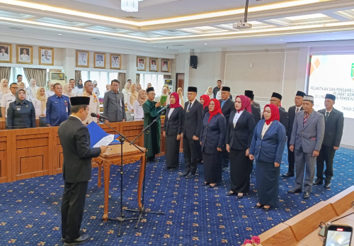 Prosesi pelantikan dan pengambilan sumpah jabatan dipimpin Sekretaris Daerah Provinsi (Sekdaprov) Lampung Marindo Kurniawan di Ruang Rapat Utama, Rabu (11-2-2026).
