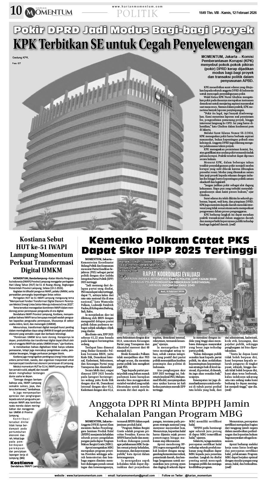 HARIAN MOMENTUM EDISI 10 FEBRUARI 2026