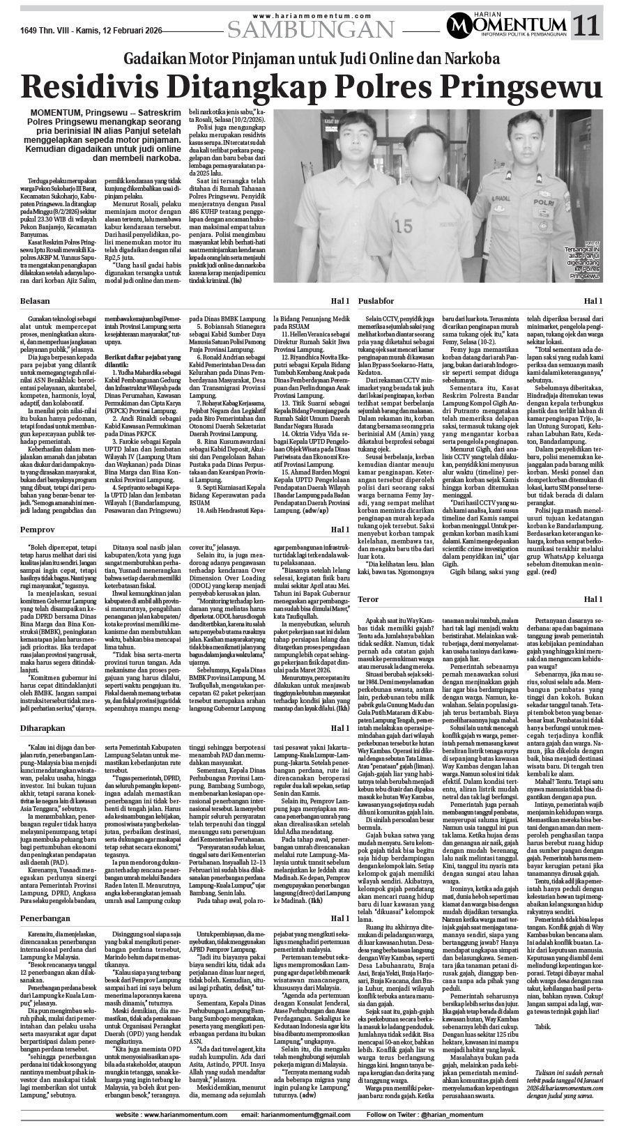 HARIAN MOMENTUM EDISI 12 FEBRUARI 2026 ...