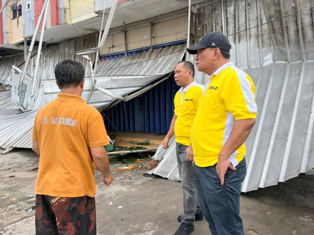 Pantauan di lapangan, Aprozi Alam sejak pukul 08.30 WIB tiba di lokasi, mendata jumlah korban yang rumahnya porak-poranda. Termasuk warga, penjual kelontong, dan belasan pedagang kaki yang gerobaknya hancur karena tertimpa puing akibat bangunan toko-toko yang roboh.