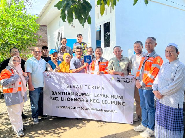 MOMENTUM, Lhoknga -- Kebahagiaan terpancar dari wajah Khairiah (45), warga Desa Meunasah Bak U, Kecamatan Leupung, dan Ridwan (53), warga Desa Aneuk Paya, Kecamatan Lhoknga, Kabupaten Aceh Besar, saat menerima bantuan rumah layak huni dari PT Solusi Bangun Andalas.