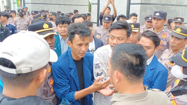 "Sudah lama kita disini, tapi tidak ada kejelasan dari anggota dewan. Mungkin kita bisa merapatkan barisan lalu kita maju ke depan dan masuk. Kenapa kita disini, ayo maju!," kata seorang orator.