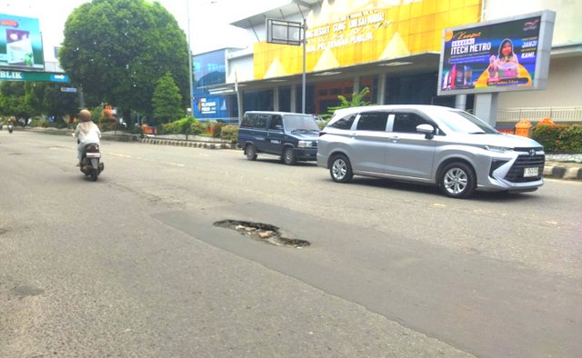 MOMENTUM, Metro -- Lubang di Jalan Jend. Sudirman, tepatnya di depan GSG Bumi Sai Wawai dan Taman Merdeka, Kecamatan Metro Pusat, Kota Metro dikritik warga.