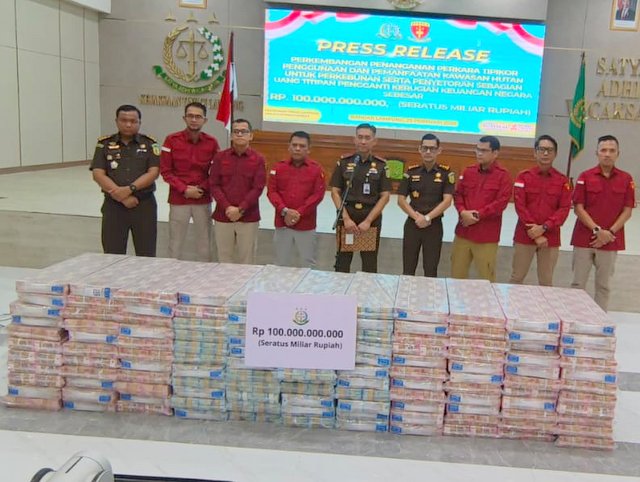 MOMENTUM, Bandarlampung -- Kejaksaan Tinggi Lampung menerima uang titipan sebesar Rp100 miliar terkait penyidikan dugaan tindak pidana korupsi penggunaan dan pemanfaatan kawasan hutan untuk perkebunan di Provinsi Lampung.